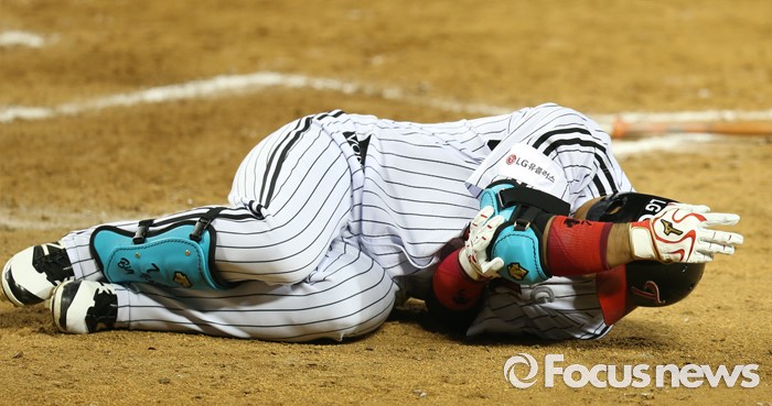 | △ 투구에 맞고 쓰러진 LG 이병규 |