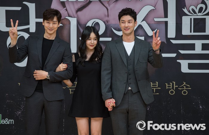 (서울=포커스뉴스) 8일 오후 서울 양천구 SBS 목동사옥에서 열린 SBS 일일드라마 '당신은 선물' 제작발표회에 참석한 배우 심지호(왼쪽부터), 허이재, 차도진이 포토타임을 갖고 있다.