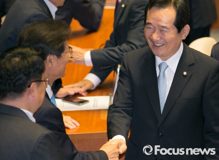 (서울=포커스뉴스) 9일 오후 서울 여의도 국회에서 열린 20대 국회 첫 본회의에 참석한 정세균(오른쪽) 더불어민주당 의원이 천정배 국민의당 공동대표와 인사하고 있다. 이날 정 의원은 20대 국회 전반기 국회의장으로 공식 선출됐다.