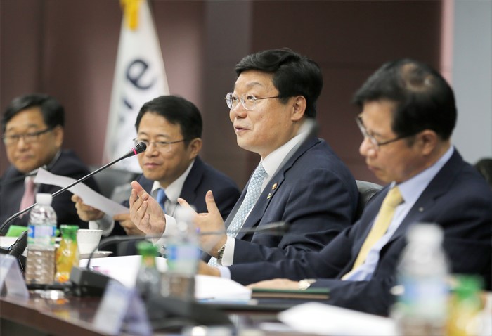 (서울=포커스뉴스) 주형환 산업통상자원부 장관이 8일 오후 서울 무역보험공사 대회의실에서 플랜트 업계 CEO 간담회를 주재하고 있다. 이날 간담회에는 최광철 플랜트협회장(SK건설 대표), 임병용 GS건설 대표, 박증흠 삼성엔지니어링 대표, 박정환 포스코엔지니어링 대표, 최광호 한화건설 대표, 정수현 현대건설 대표, 강영국 대림산업 대표, 홍기표 대우건설 부사장, 김헌탁 두산중공업 부사장, 조용두 포스코건설 본부장, 김영학 무역보험공사 사장, 최성환 수출입은행 부행장, 염동관 플랜트산업협회 부회장이 참석했다. <사진제공=산업통상자원부>