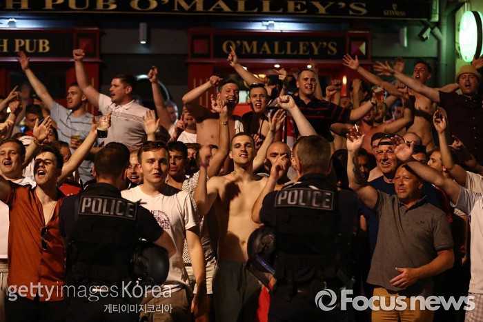 버나드 마티 전국호텔업연맹(UMIH) 마르세유 지부 회장은 "당장 영국과 러시아가 맞붙는 주말 경기부터 지역 상권에 영향을 끼치게 될 것"이라며 "정부와 지자체가 더 긴밀하게 논의해야 한다"고 밝혔다.10일(현지시간) 프랑스에서 유로2016이 막을 올린다. 영국 축구팬들이 러시아와의 경기를 앞두고 프랑스 마르세이유의 한 술집에 모였다. 프랑스 정부는 유럽 전역의 테러 위협이 커지는 가운데 지정 장소를 제외한 모든 음식점과 술집에서 단체로 유로2016 경기를 관람하지 못하도록 조치하겠다고 밝혔다. (Photo by Carl Court/Getty Images)2016.06.10 ⓒ게티이미지/이매진스