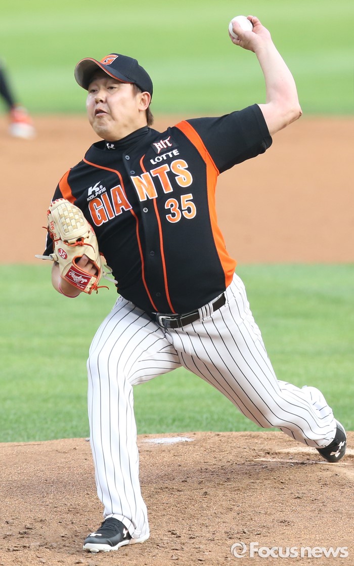 (서울=포커스뉴스) 10일 서울 잠실구장에서 열린 2016프로야구 롯데-두산 경기에서 1회말 롯데 선발투수 이명우가 투구하고 있다.