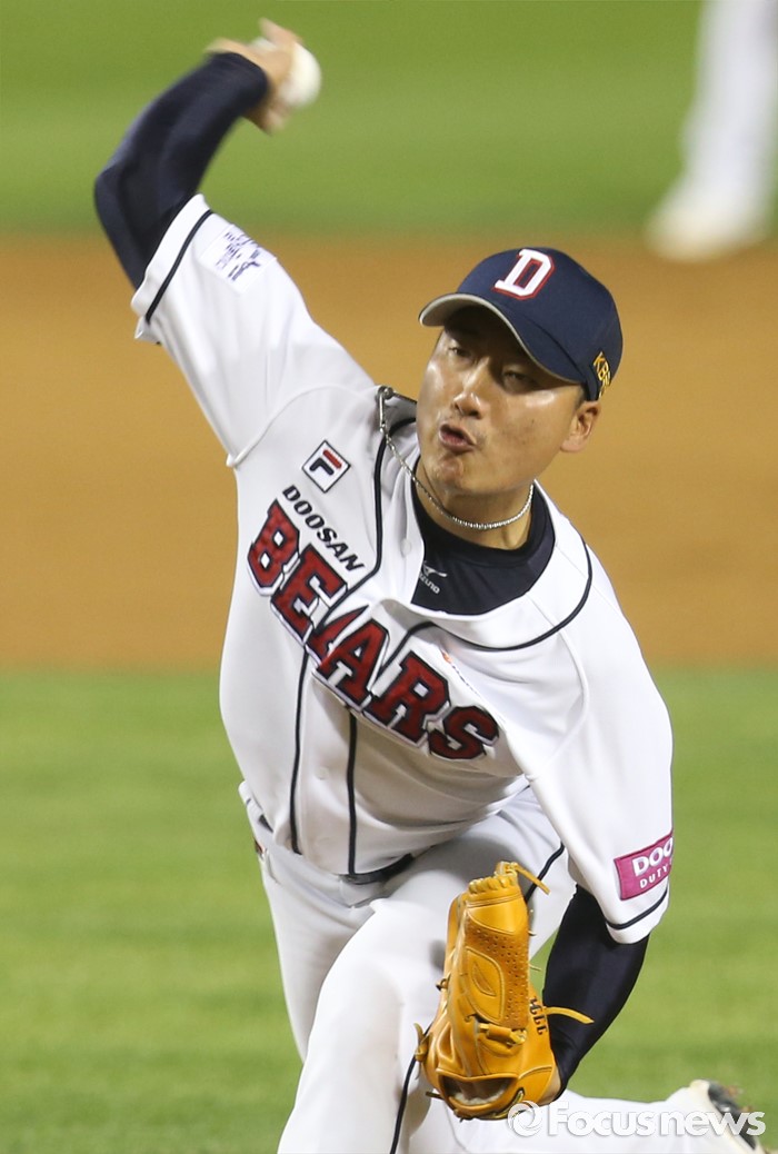 (서울=포커스뉴스) 10일 서울 잠실구장에서 열린 2016프로야구 롯데-두산 경기 8회초 두산 투수 정재훈이 등판해 투구하고 있다.