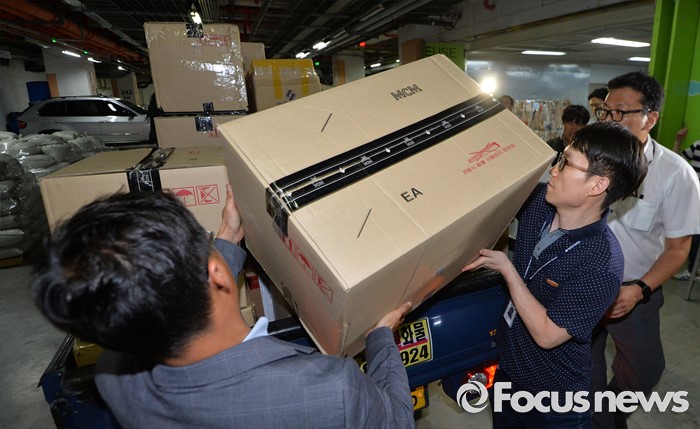 (서울=포커스뉴스) 10일 오후 서울 중구 소공동 롯데호텔에서 검찰 수사관들이 롯데그룹 정책본부 등 계열와 신동빈 롯데그룹 회장 집무실에서 압수수색한 서류를 화물차에 싣고 있다.