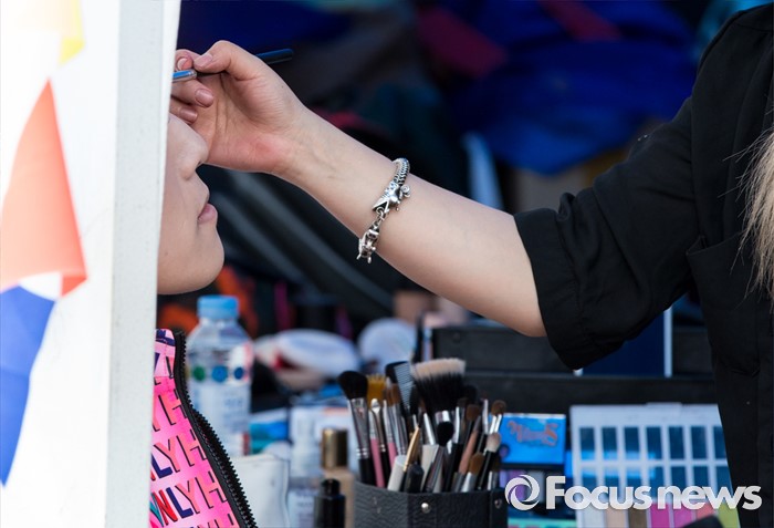 (서울=포커스뉴스) 11일 오후 서울광장에서 열린 제17회 퀴어문화축제에서 한 참가자가 무대화장을 받고 있다.