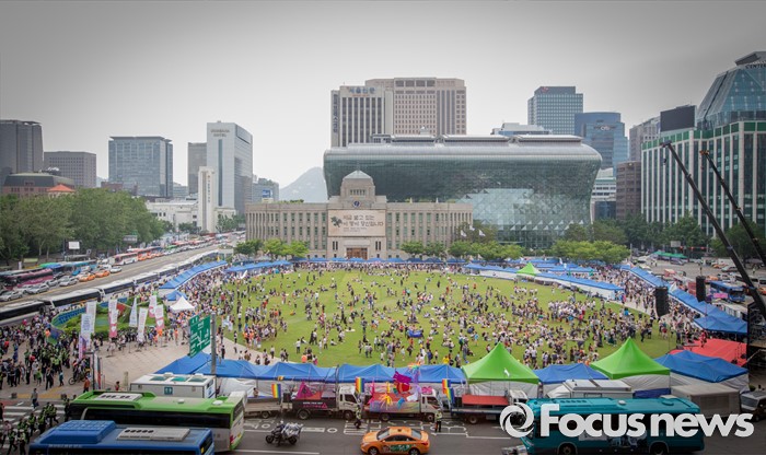 (서울=포커스뉴스) 11일 오후 서울광장에서 열린 제17회 퀴어문화축제에서 참가자들이 축제를 즐기고 있다.