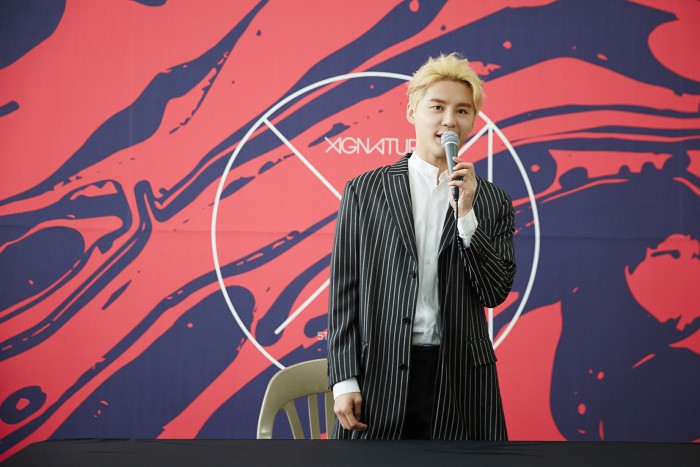 가수 XIA(김준수)가 네 번째 정규 앨범 ‘시그니처(XIGNATURE)’를 발표한 소감을 밝혔다. 11일 오후 서울 올림픽공원 체조경기장에서 열릴 5번째 아시아투어 서울 공연에 앞서 진행된 기자회견에서다.