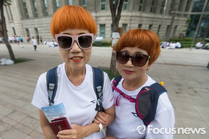 (서울=포커스뉴스) 12일 오전 서울 중구 서울시청 광장에서 열린 제 7회 나라사랑 고궁걷기 대회에 참가한 시민들이 기념촬영을 하고 있다.