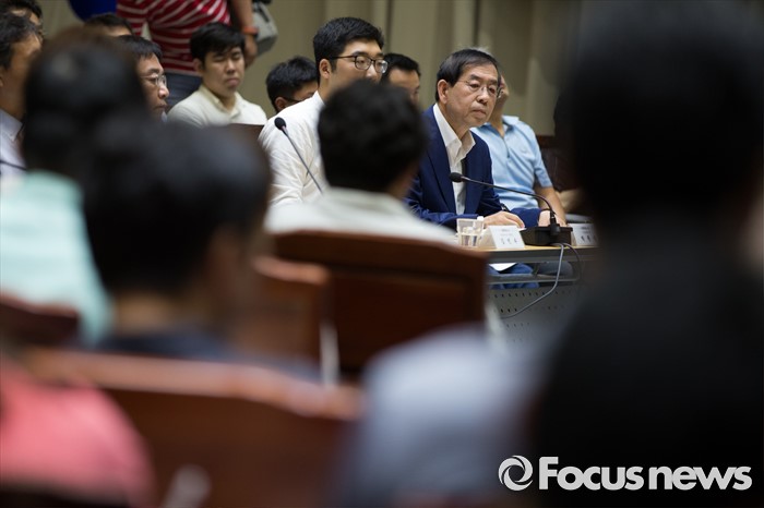 (서울=포커스뉴스) 박원순 서울시장이 12일 오후 서울 중구 서울시청에서 열린 '구의역 사고 해결을 위한 시민토론회'에서 패널의 발언을 듣고 있다.