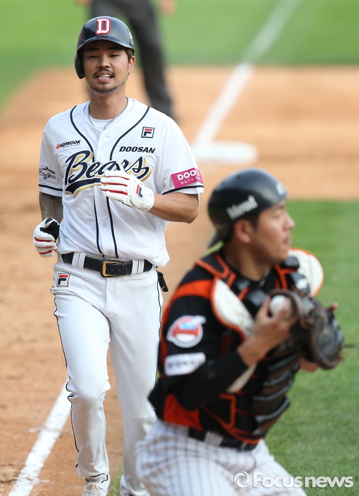 | △ 홈에서 포스아웃되는 오재원 |