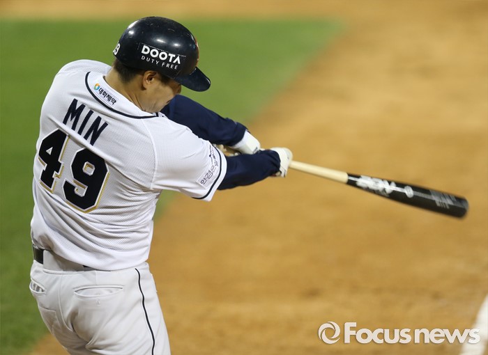| △ 끝내기 2루타 치는 두산 민병헌 |