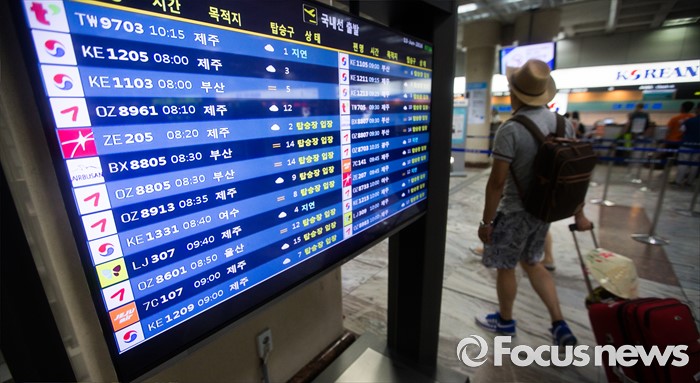 (서울=포커스뉴스) 13일 오전 서울 김포공항 국내선 청사에 항공기 도착 정보가 게시되고 있다. 지난 12일 오후 저시정특보가 내려진 제주공항은 짙은 안개와 연결편 문제로 150여편 지연 운항, 2편 결항했지만 13일 오전 6시에 특보를 해제했으며 오전 9시 현재 모든 항공편이 정상 운항하고 있다고 밝혔다.