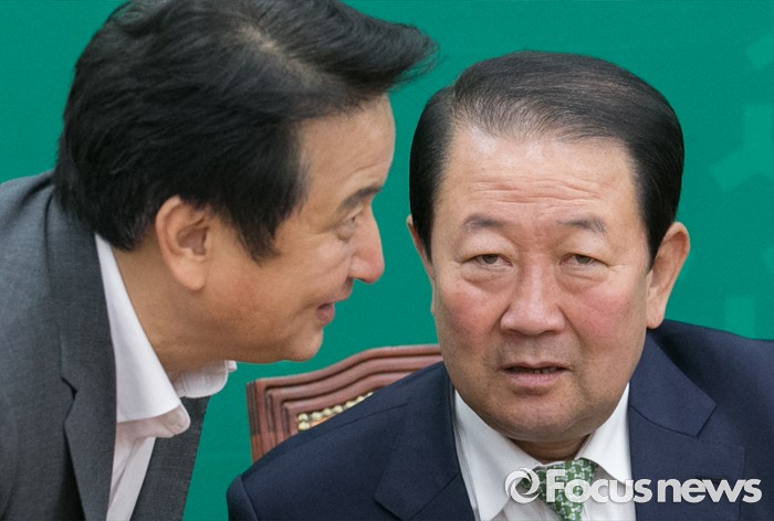 (서울=포커스뉴스) 13일 오전 서울 여의도 국회에서 열린 국민의당 최고위원회의에 참석한 박주선(오른쪽) 국회 부의장과 김영환 사무총장이 대화하고 있다.