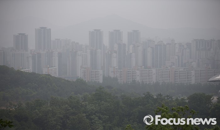 (서울=포커스뉴스) 13일 서울 마포구 하늘공원에서 바라본 서울 도심이 안개로 뿌옇게 보이고 있다.
