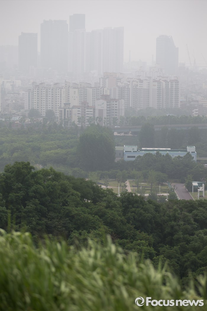(서울=포커스뉴스) 13일 서울 마포구 하늘공원에서 바라본 서울 도심이 안개로 뿌옇게 보이고 있다.