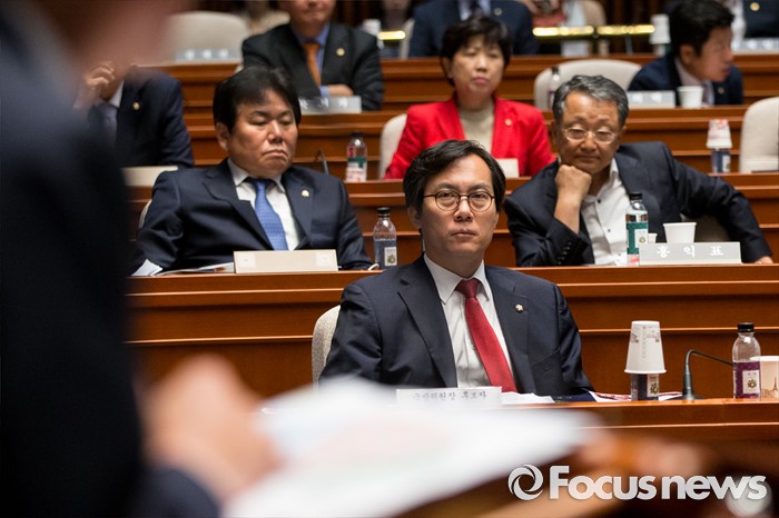 (서울=포커스뉴스) 국방위원장을 맡게 된김영우 새누리당 의원이 13일 오전 서울 여의도 국회에서 열린 의원총회에 참석하고 있다.