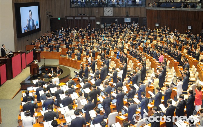 (서울=포커스뉴스) 13일 오전 서울 여의도 국회에서 열린 20대 국회 개원식에 참석한 의원들이 선서를 하고 있다.