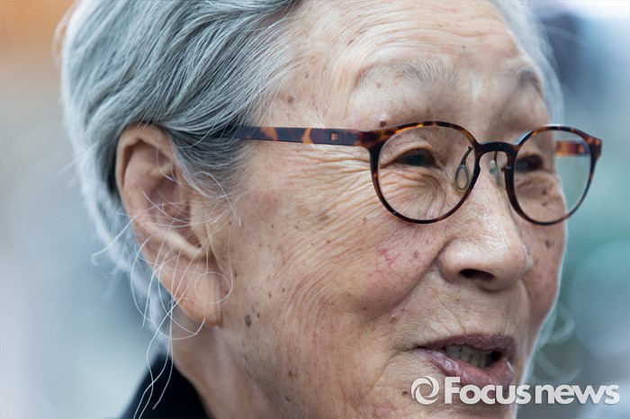 (인천공항=포커스뉴스) 일본군 위안부 피해자인 김복동 할머니가 유엔 인권이사회에 참석하기 위해 13일 오전 인천국제공항 출국장으로 들어서며 취재진과 인터뷰를 하고 있다.