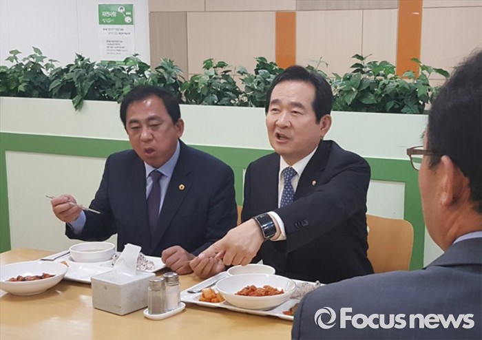 (서울=포커스뉴스) 정세균 국회의장이 13일 오후 서울 여의도 국회에서 열린 20대 국회 개원식을 마친 뒤 구내식당에서 식사를 하고 있다.