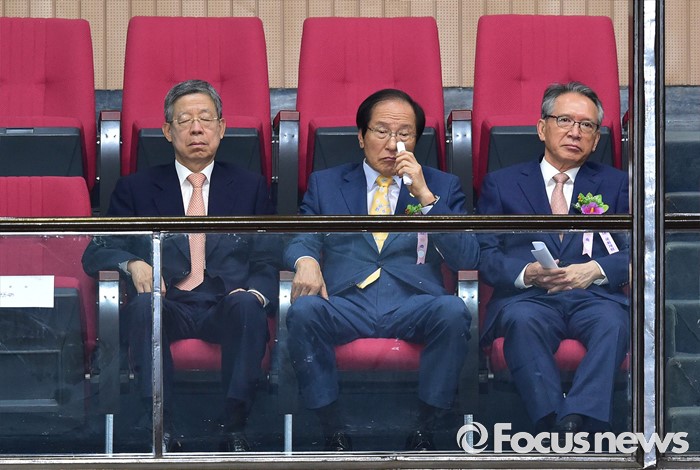 | △ 연설 듣는 김희옥-신경식-김형오 |