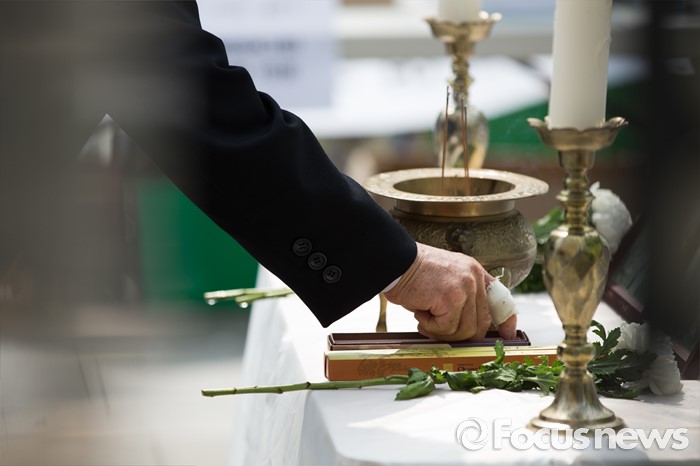 (서울=포커스뉴스) 2002년 미군 궤도차량에 치여 숨진 고(故) 신효순·심미선 양 14주기인 13일 오후 서울 종로구 광화문 광장에 마련된 분향소에서 참가자들이 헌화하고 있다.