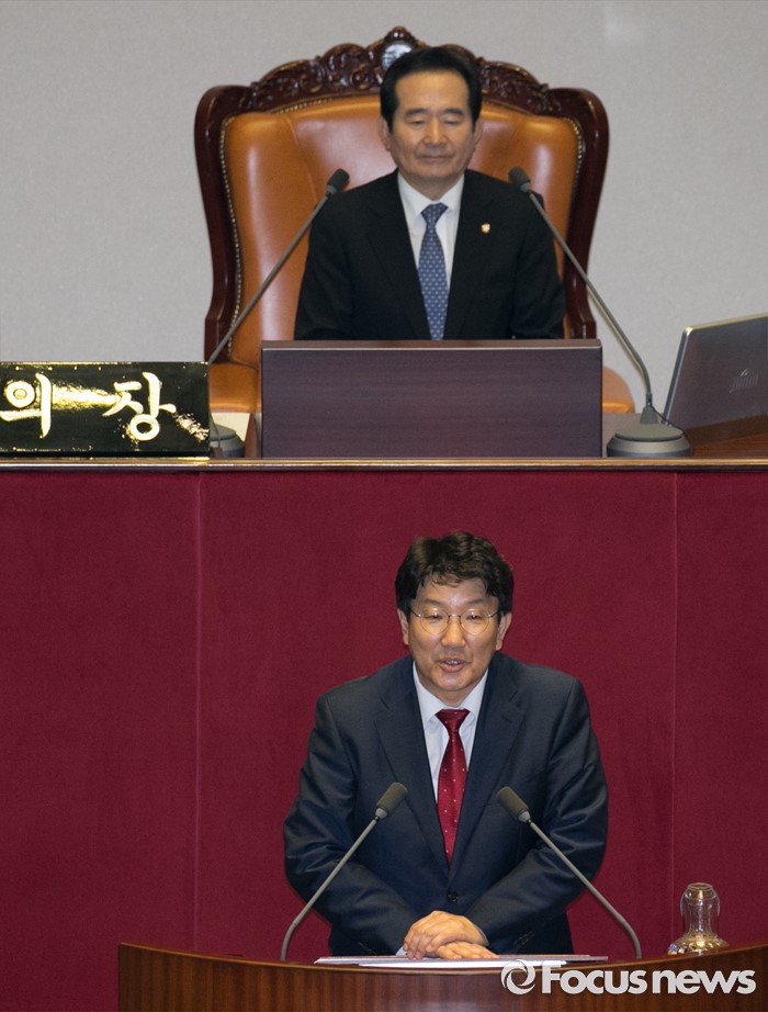 (서울=포커스뉴스) 13일 오후 서울 여의도 국회에서 열린 343회 국회(임시회) 2차 본회의에 참석한 권성동 신임 법제사법위원장이 당선 인사를 하고 있다.