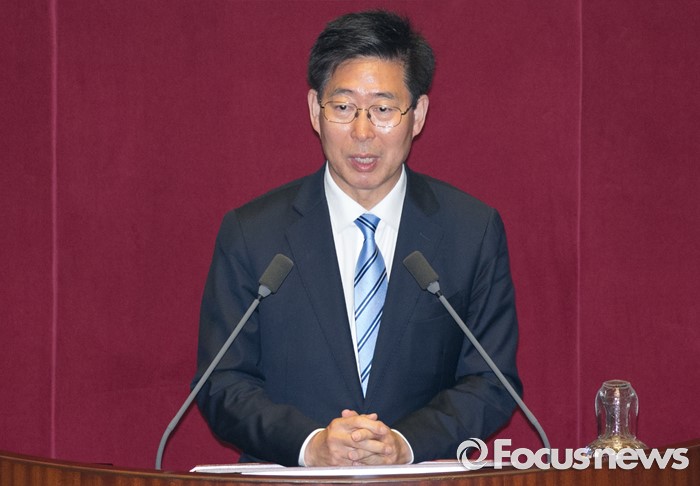 (서울=포커스뉴스) 13일 오후 서울 여의도 국회에서 열린 343회 국회(임시회) 2차 본회의에 참석한 양승조 신임 보건복지위원장이 당선 인사를 하고 있다.