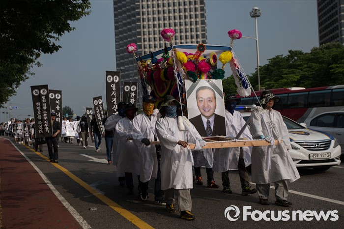 | △ 유성기업 노동자 故 한광호씨의 꽃상여 행진 |