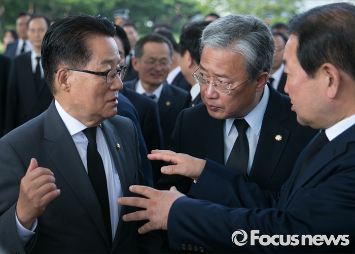 (서울=포커스뉴스) 박지원(왼쪽부터) 국민의당 원내대표, 유성엽 교육문화체육관광위원장, 박주선 국회 부의장이 14일 오전 동작구 국립서울현충원을 방문해 참배를 마친 뒤 대화하고 있다.
