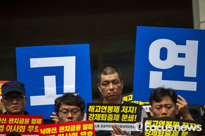 (서울=포커스뉴스) 14일 오전 서울 종로구 세종문화회관 앞에서 양대노총 공공부문공대위가 주최하는 '성과연봉제 중단 촉구 및 공공기관장 워크숍 규탄 기자회견'이 열리고 있다.