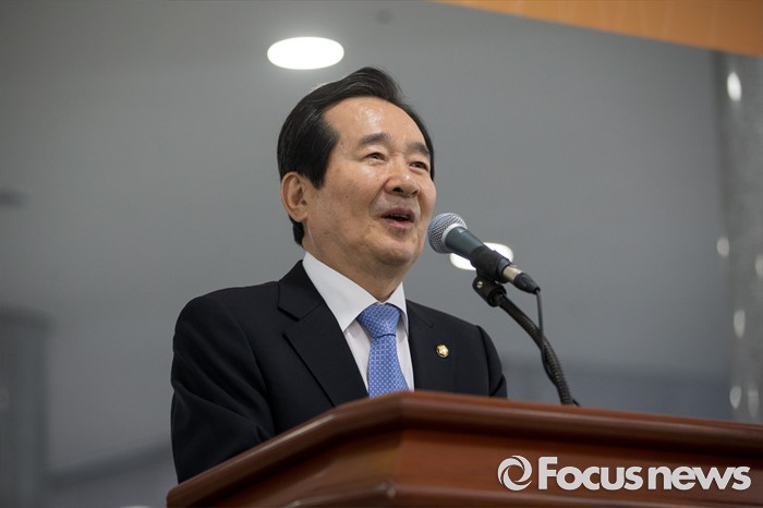 (서울=포커스뉴스) 정세균 국회의장이 14일 오전 서울 여의도 국회 의원회관에서 열린 국회도서관 박람회 개막식에 참석해 축사하고 있다.