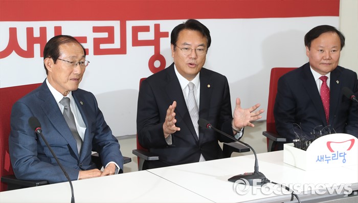 (서울=포커스뉴스) 정진석(가운데) 새누리당 원내대표가 14일 오전 서울 여의도 국회를 방문한 이원종(왼쪽) 대통령비서실장, 김재원 청와대 정무수석과 면담을 하고 있다.