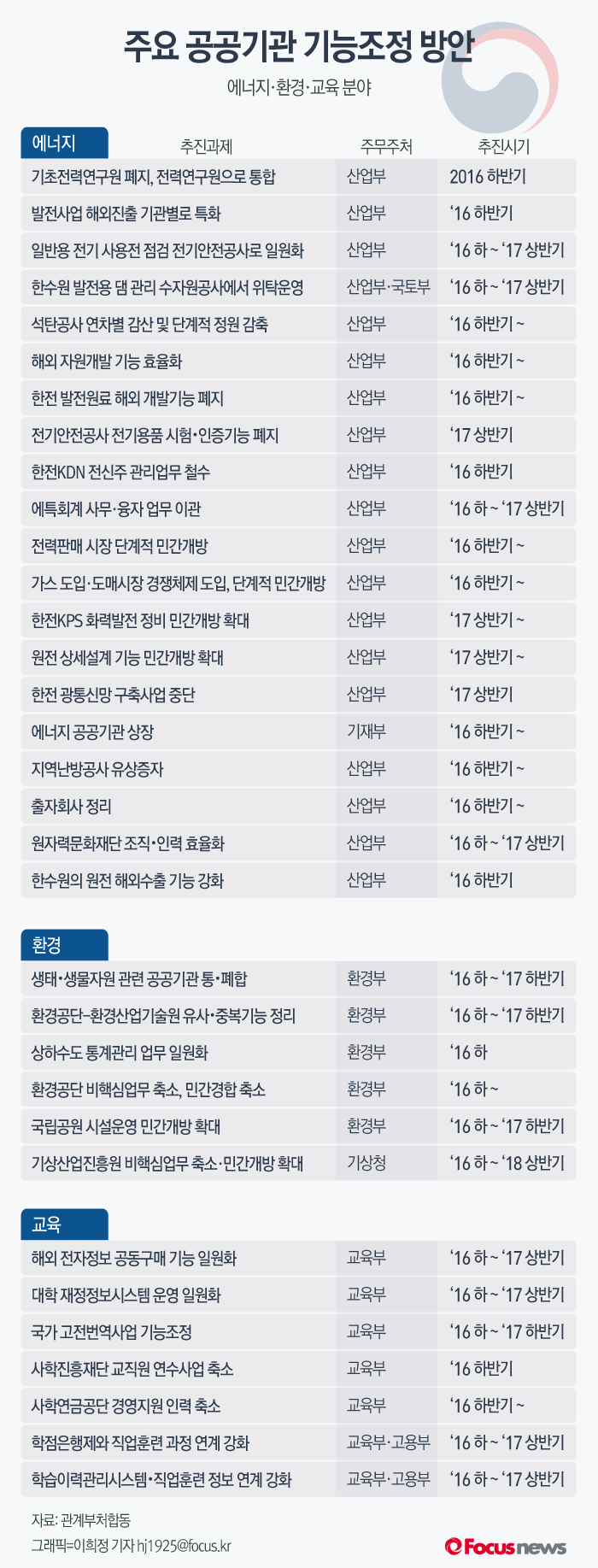 (서울=포커스뉴스) 유일호 경제부총리 겸 기획재정부장관은 14일 2016 공공기관장 워크숍을 통해 '에너지·환경·교육 분야 공공기관 기능조정’ 방안을 발표했다. 이에 따라 에너지·환경·교육 분야에서 유사·중복 기능을 일원화하거나 기관 통·폐합이 추진된다.