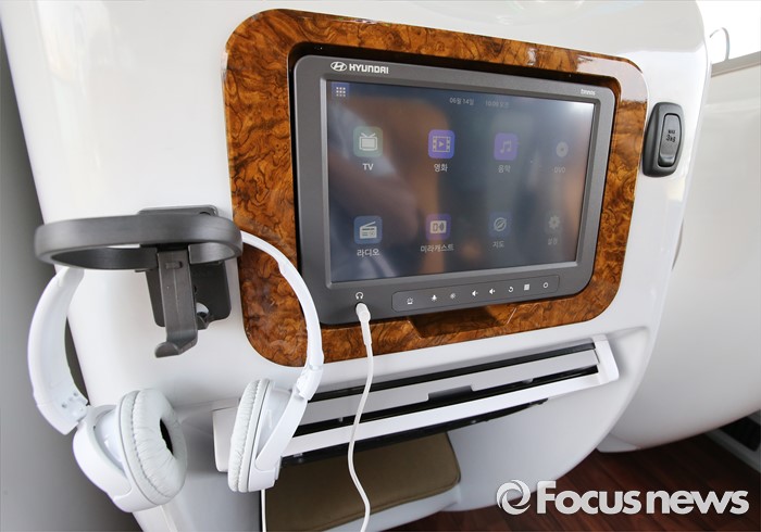 (세종=포커스뉴스) 프리미엄 고속버스 도입에 앞서 시승행사가 14일 오전 세종시 정부세종청사 제2주차장에서 열렸다. 사진은 현대자동차 21인승 프레스티지 유니버스 내부모습.