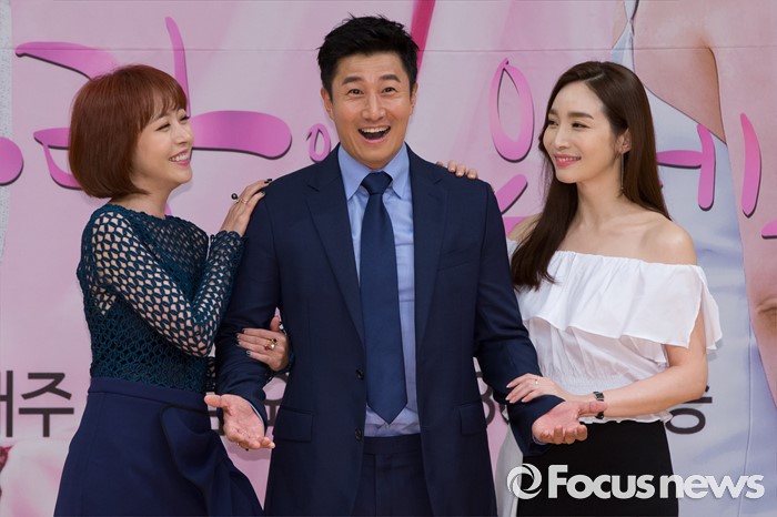 (서울=포커스뉴스) 14일 오후 서울 양천구 SBS 목동사옥에서 열린 SBS 일일드라마 '사랑이 오네요' 제작발표회에 참석한 배우 (왼쪽부터) 심은진, 이훈, 이민영이 포토타임을 갖고 있다.