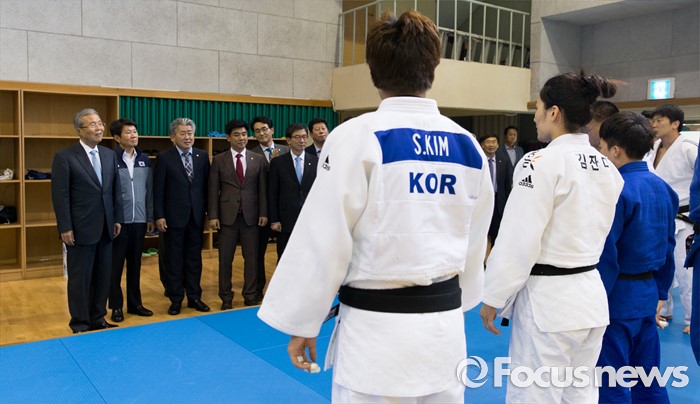 (서울=포커스뉴스) 리우데자네이루 하계올림픽을 52일여 앞둔 14일 오후 서울 노원구 태릉선수촌을 방문한 김종인 더불어민주당 비상대책위원회 대표가 유도 국가대표 선수들을 격려하고 있다.