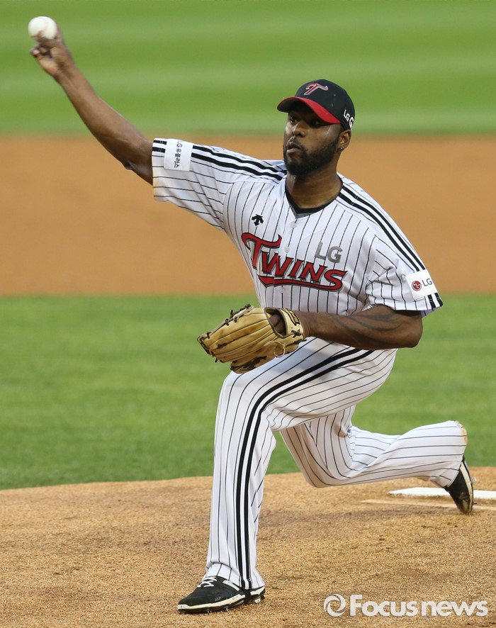 (서울=포커스뉴스) 14일 서울 잠실구장에서 열린 2016 프로야구 NC-LG 경기에서 1회초 LG 선발투수 소사가 투구하고 있다.