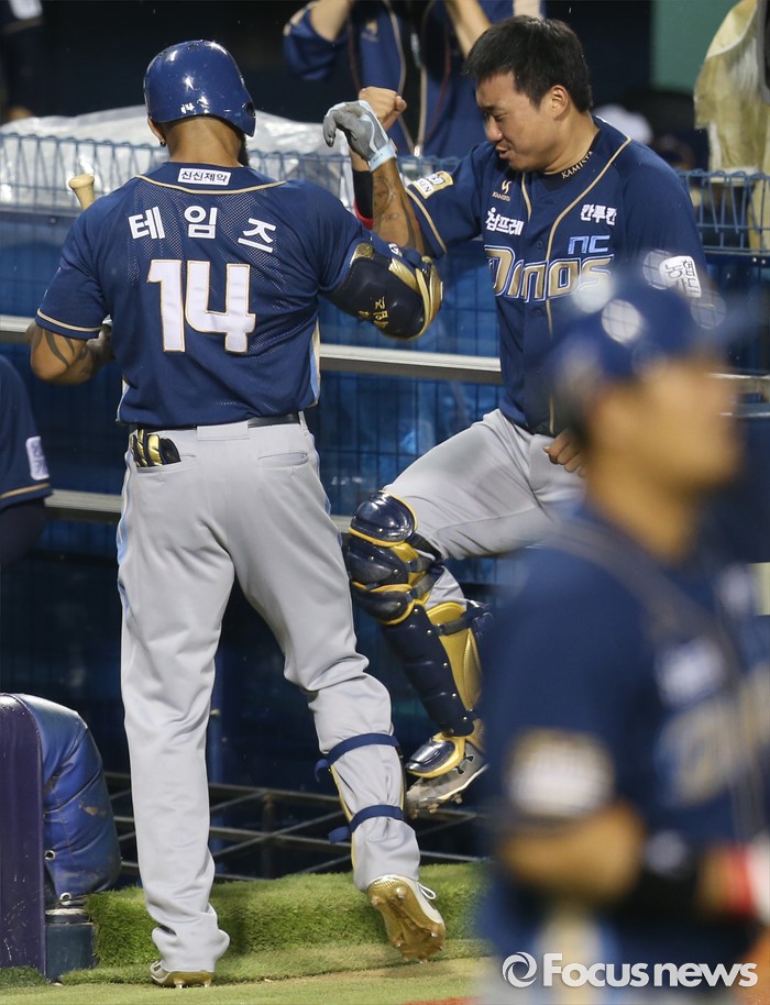 △ 김태군과 세레머니하는 NC 테임즈