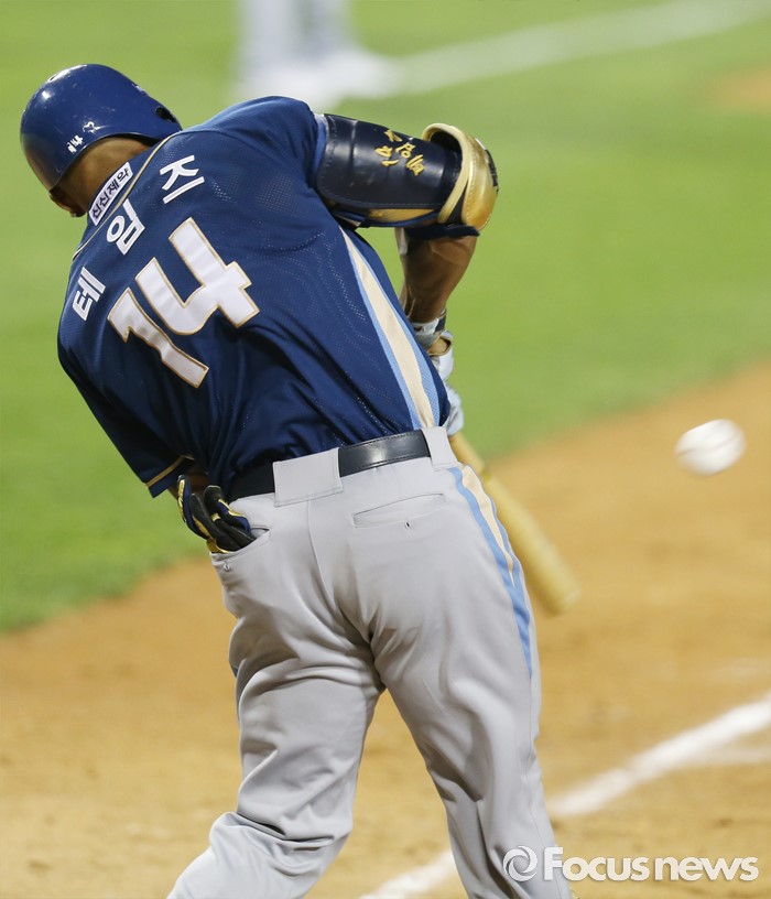 (서울=포커스뉴스) 14일 서울 잠실구장에서 열린 2016 프로야구 NC-LG 경기 9회초 1사 만루에서 NC 테임즈가 주자를 모두 불러 들이는 우익수앞 3루타를 치고 있다.