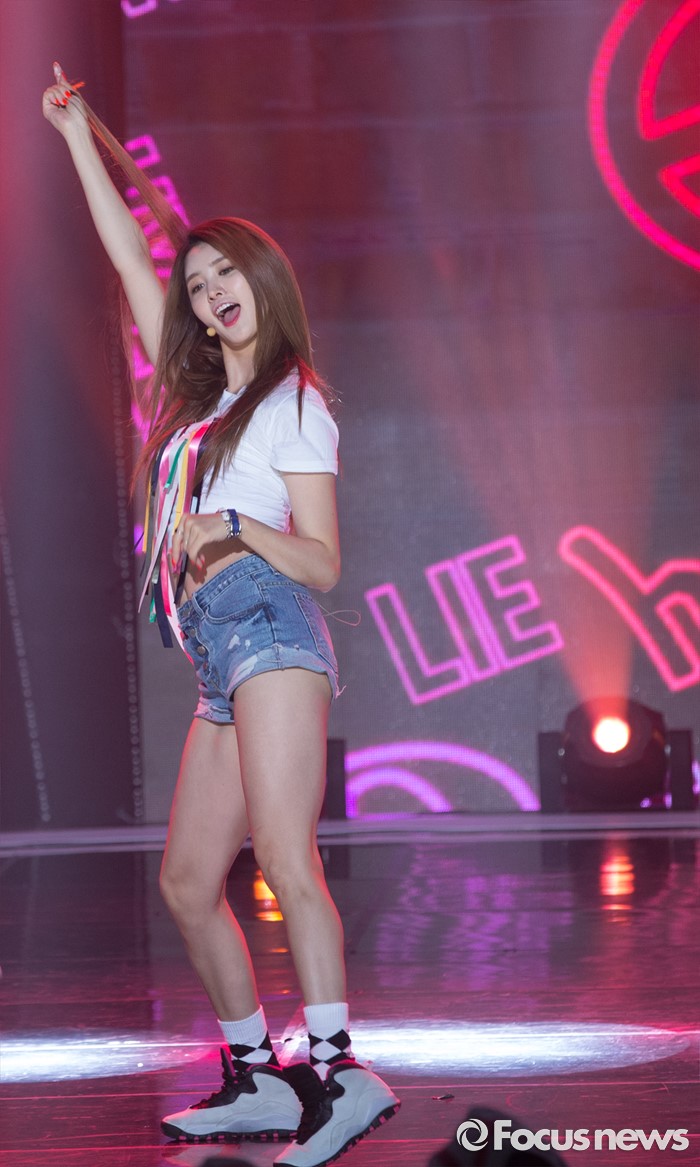 (서울=포커스뉴스) 14일 오후 서울 마포구 SBS프리즘 타워에서 열린 SBS MTV '더쇼' 생방송 현장에 참여한 걸그룹 EXID의 멤버 정화가 무대를 선보이고 있다.