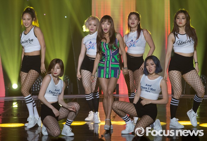 (서울=포커스뉴스) 14일 오후 서울 마포구 SBS프리즘 타워에서 열린 SBS MTV '더쇼' 생방송 현장에 참여한 가수 루나가 무대를 선보이고 있다.