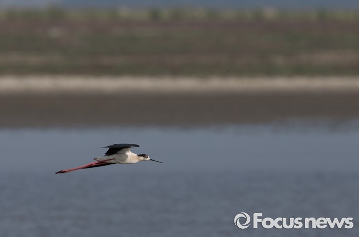 (인천=포커스뉴스) 장다리물떼새가 인천시 영종도 갯벌 매립지 내 작은 습지를 둘러보고 있다.