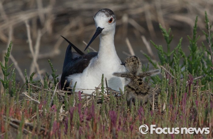 (인천=포커스뉴스) 하루 사이로 번저 부화된 장다리물떼새 어린새가나머지 알을 품고 있는 어미새 앞에서 날개짓하며 재롱 부리고 있다.