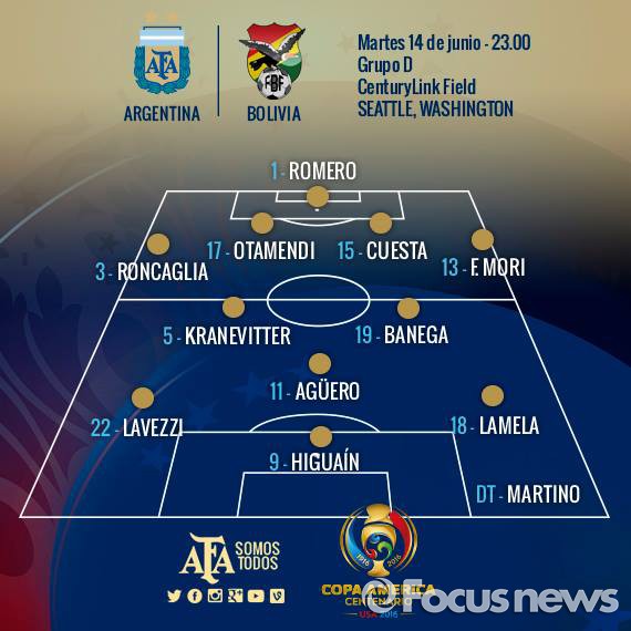 아르헨티나는는 15일 오전 11시(한국시간)미국 시애틀 센추리링크 필드에서 볼리비아와의 코파 아메리카 센테나리오 2016 D조 3차전을 치른다.