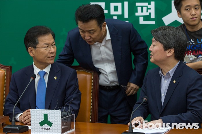 (서울=포커스뉴스) 천정배(왼쪽) 국민의당 공동대표가 15일 오전 서울 여의도 국회에서 열린 최고위원회의에 참석해 김영환 사무총장과 대화를 나누고 있다.