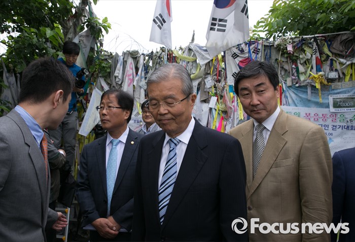 (파주=포커스뉴스) 15일 오전 경기도 파주 임진각 통일전망대에서 더불어민주당 비상대책위원회의를 마친 김종인 비대위 대표와 의원들이 자유의 다리를 찾아 둘러본 뒤 이동하고 있다.