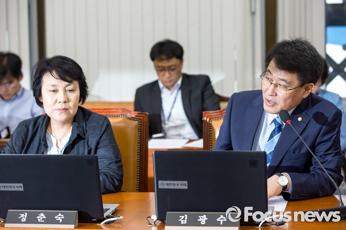 (서울=포커스뉴스) 김광수(오른쪽) 보건복지위 국민의당 간사가 15일 오전 서울 여의도 국회에서 열린 '보건복지위원회 전체회의'에 참석해 인사말 하고 있다.