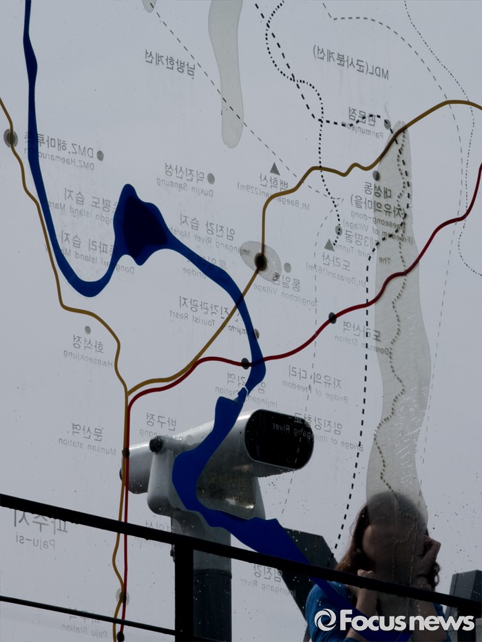 (파주=포커스뉴스) 6·15 남북공동선언 16주기인 15일 오전 경기도 파주 임진각 통일전망대를 방문한 관광객들이 북녘을 살펴보고 있다.