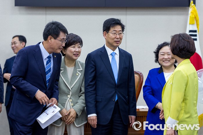 (서울=포커스뉴스) 양승조(오른쪽 세 번째) 국회 보건복지위원회 위원장을 비롯한 3당 간사들이 15일 오전 서울 여의도 국회에서 열린 '보건복지위원회 전체회의'를 마친 뒤 동료 의원들돠 대화를 나누고 있다. 왼쪽부터 김광수 국민의당 간사, 박인숙 새누리당 간사, 양승조 위원장, 인재근 더불어민주당 간사.