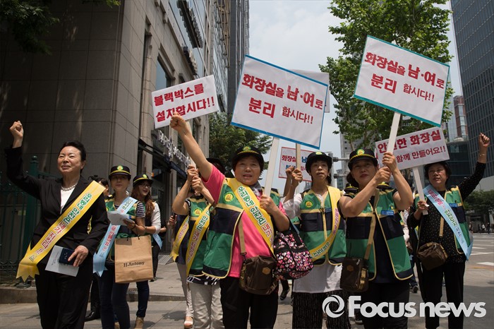 (서울=포커스뉴스) 15일 오전 서울 강남구 강남역인근에서 안전문화운동 실천협의회, 여성 민방대원들이 여성 안전 대책을 촉구하며 캠페인을 벌이고 있다.